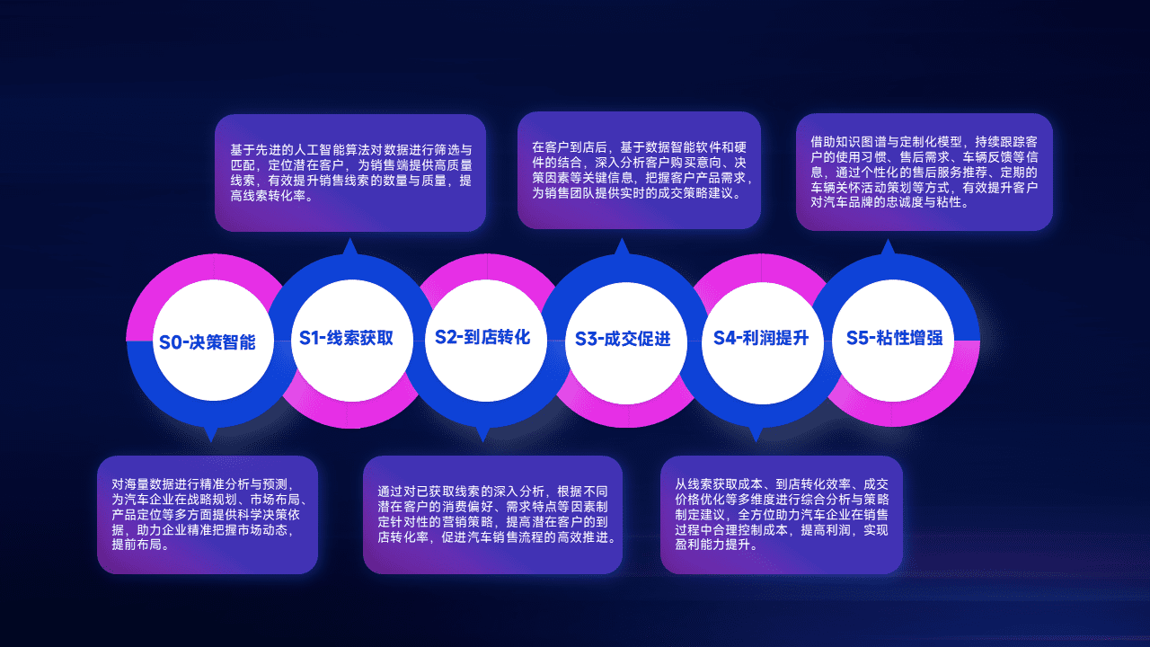 通过拓宽潜在客户来源、、优化线索分配并提高到店转化率,,以增强销售效率。。。同时,,,利用线索数据不断优化分析模型,,,,有效提升转化率,,,,扩大营销影响力。。。